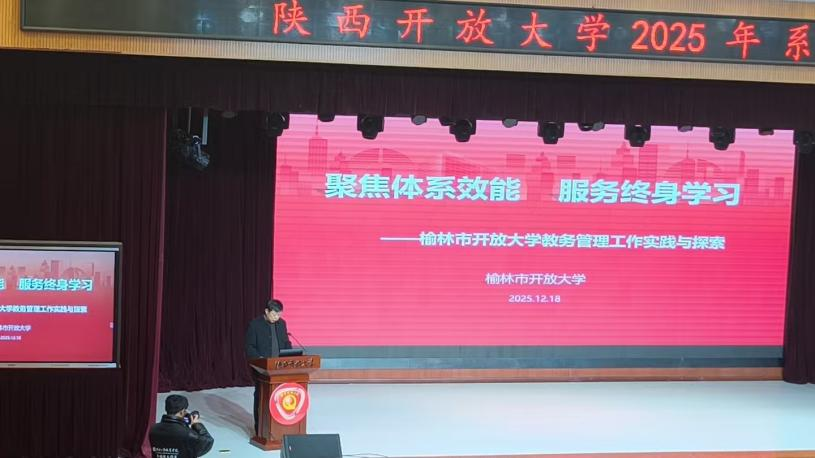 12月18日,榆林市开放大学党总支书记丁建伟、校长安煜、副校长闫磊及教务教学部门负责人代表学校参加了陕西开放大学2025年度系统工作会议,紧密对接省校系统工作部署,持续推动开放教育高质量发展。