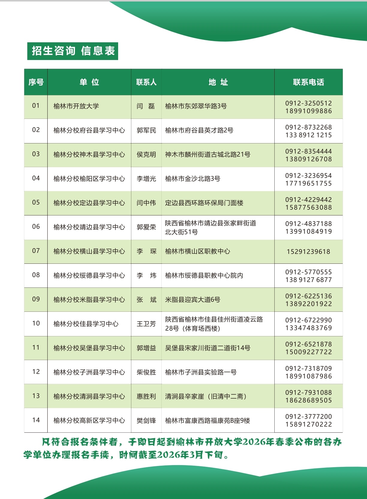 2026年春季榆林市开放大学招生简章
